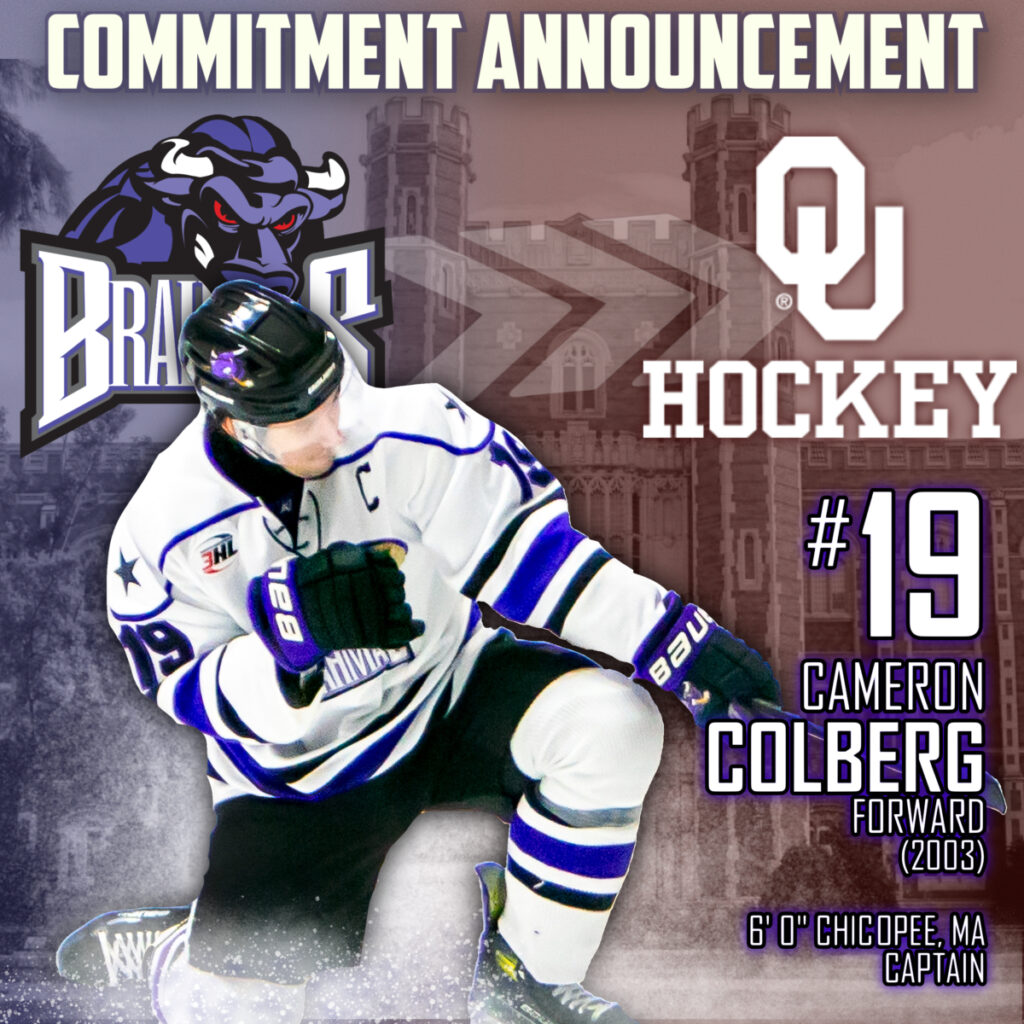 Texas Brahmas Captain Cameron Colberg has announced his commitment to play ACHA M1 Hockey for the University of Oklahoma. Colberg will join a roster with several former Brahmas already wearing the OU crimson, including 2022-23 Texas Brahmas Captain Ben Mondou, 2021-22 Texas Brahmas Captain Cameron Bickford, AC Aaron Best, and AC Adam Goldstein.